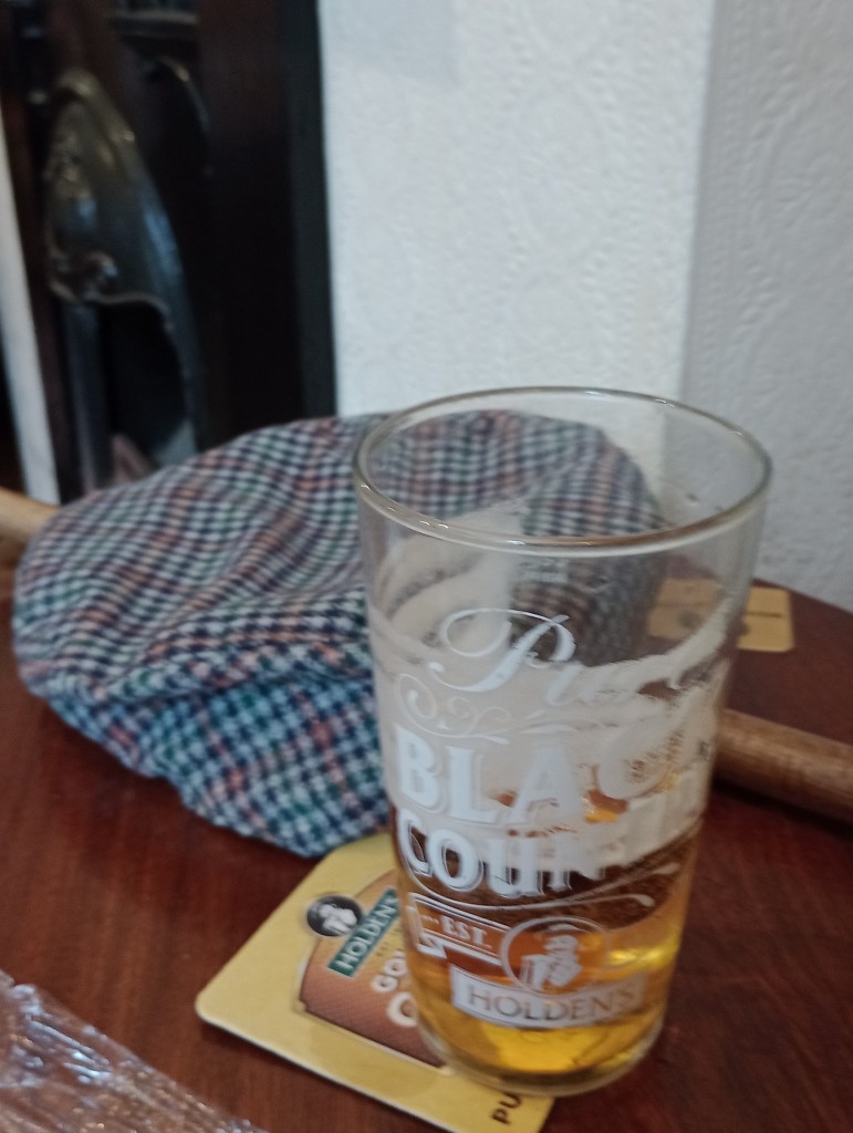 Off as originally planned at Wolverhampton where I sought out the nearby Great Western Pub for a pint and a cob. It is a very good pub with lots of Railwayana. Holden’s Golden Glow – 4.4%