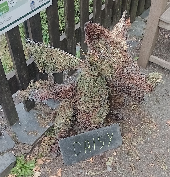 I have never been on a railway where everyone on the staff waves to all the trains and passengers. At Abergwynolwen they are running footplate rides on Dolgoch for a mere £1 and of course I cant resist. The young members help are as young as 5 or six- helping to maintain the dragons along the line made of wire and plant material. The down journey seemed long tbut the return quicker! Had to get back to mainline quite quickly or there was atwo hour wait for the return train.